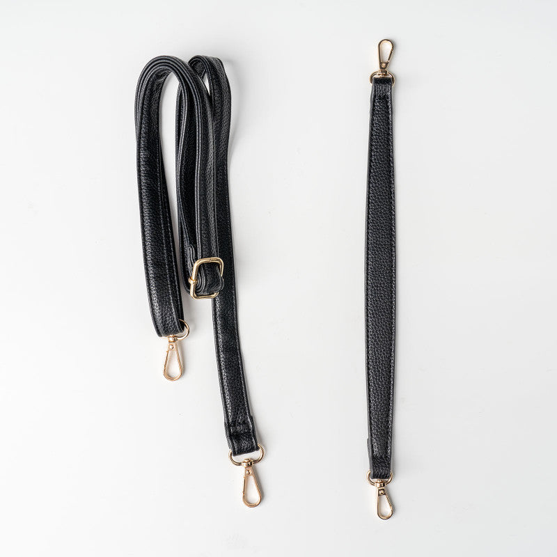 - Includes two (2) interchangeable straps: small shoulder strap & adjustable crossbody strap (55” fully extended)